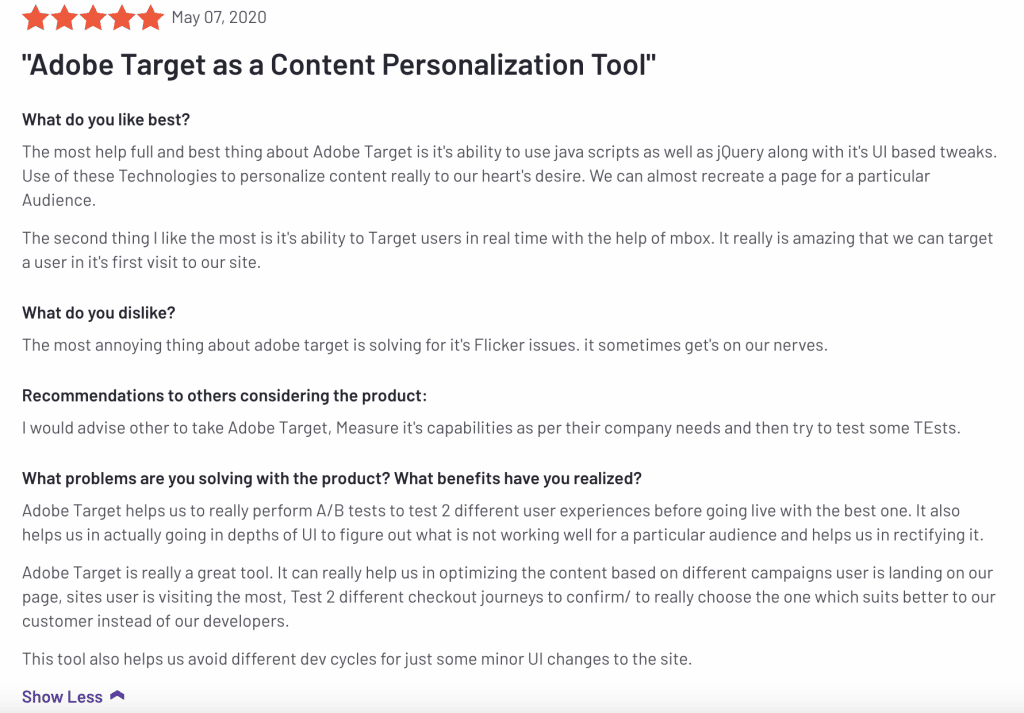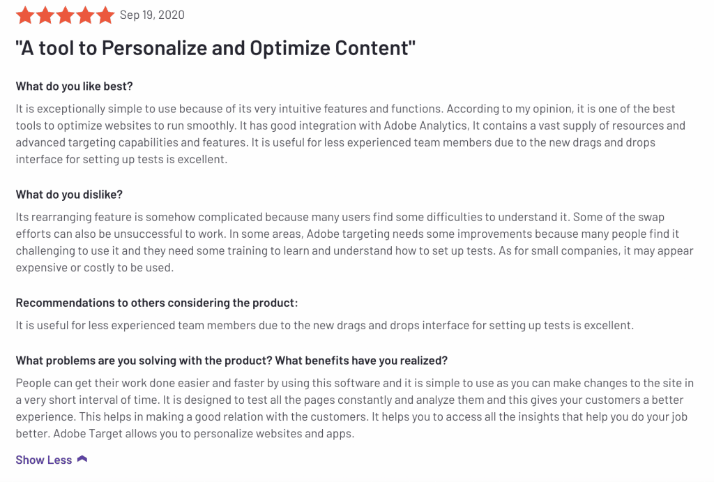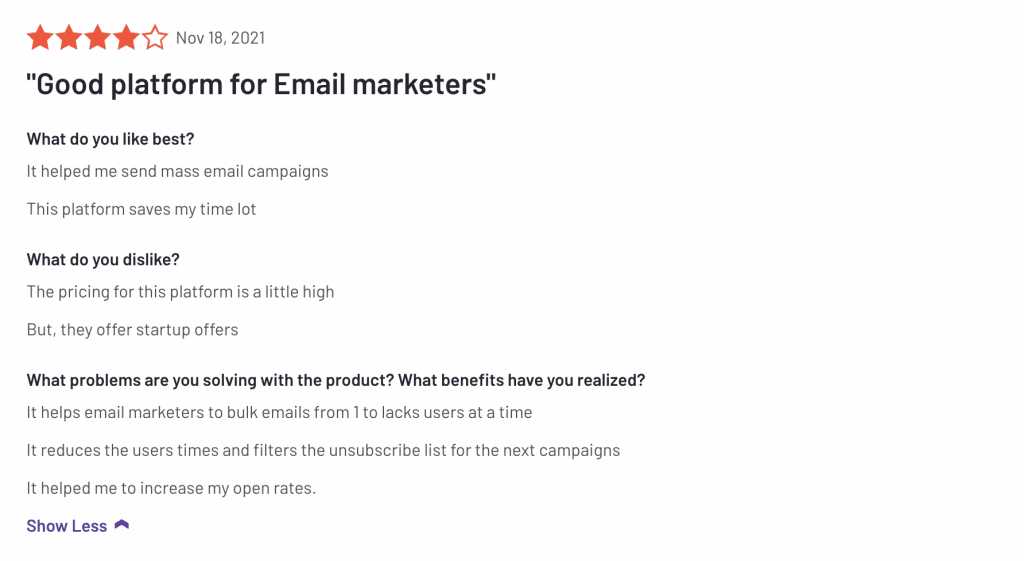 Here are some of the customer reviews about Freshmarketer, according to the Gartner Peer Insights website: