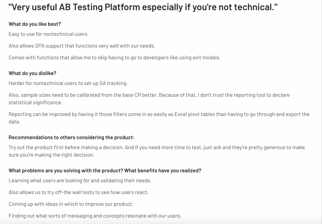 Here are some of the reviews about the AB Tasty tool from G2 website