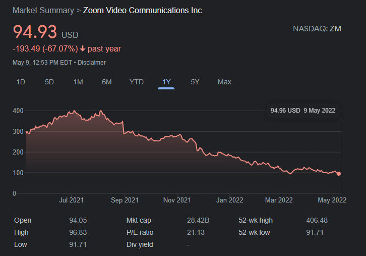 Not that much, right? What was it like during the pandemic? It soared, right? What about now? Zoom’s shares are tanking now because people are abandoning the platform.