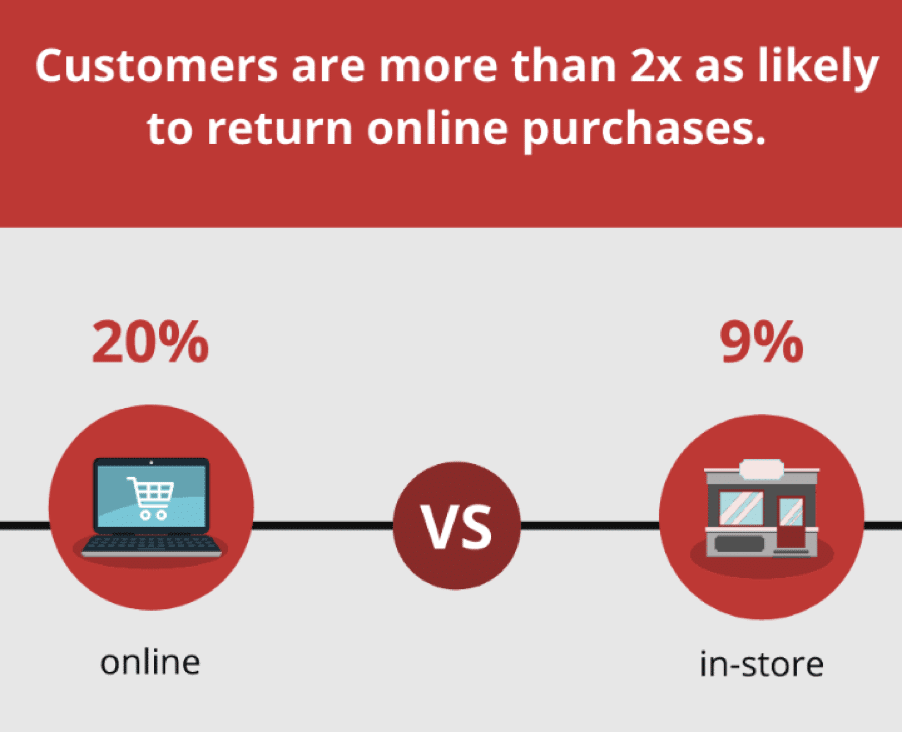 It’s also worth noting that shoppers are more than twice as likely to return products they purchase from online stores. This makes it even more important for ecommerce stores to have a clear and easy-to-understand refund and return policy in place.