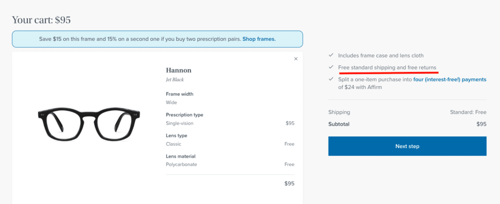 By providing this level of clarity in product descriptions, Warby Parker is building trust with their loyal customers, making it more likely that they’ll return for future purchases.