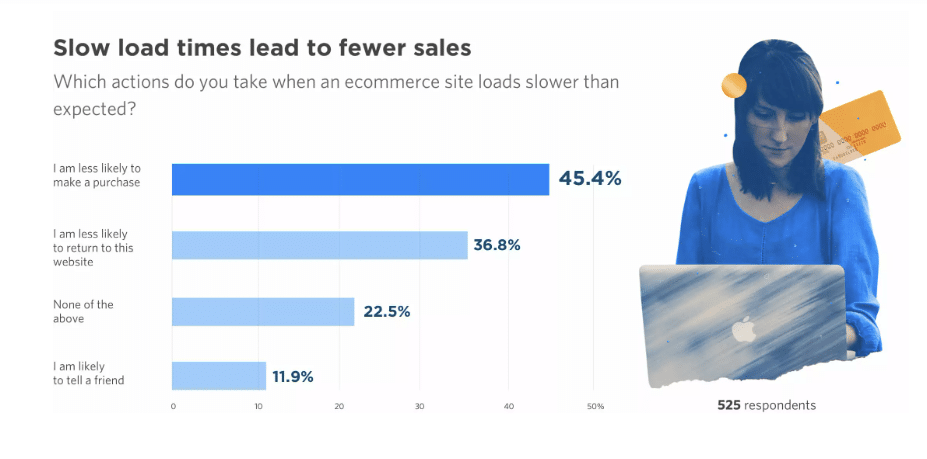 According to another report by Unbounce, 45.4% of respondents said they are less likely to purchase if an e-commerce site loads slower than expected. This means that a slow checkout page can lead to lost sales and decreased revenue for your online store.