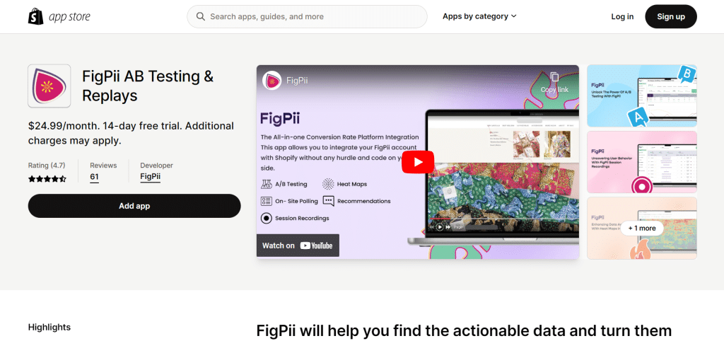 To A/B test your Shopify store using Figpii, you need to log in to your dashboard and install FigPii on your store.