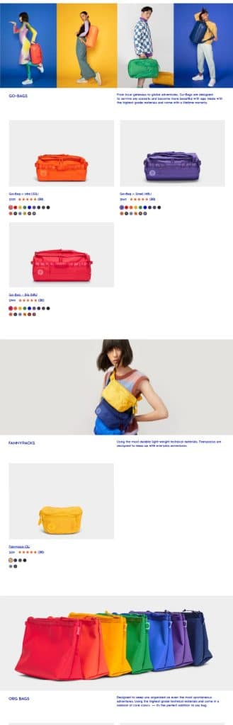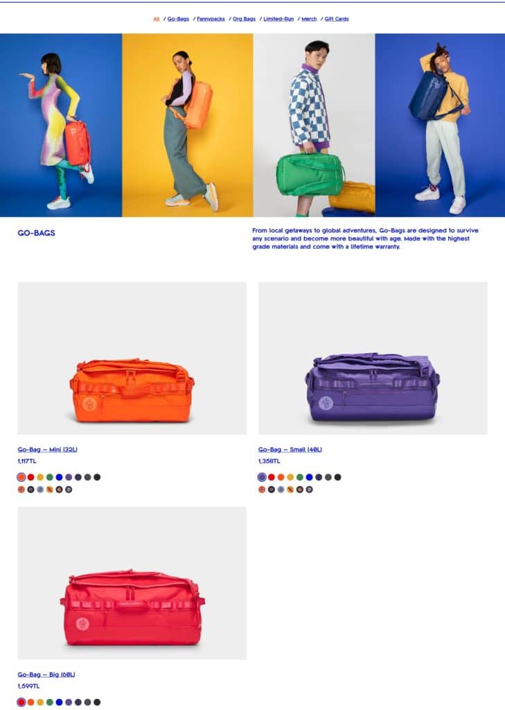 That’s why we tested replacing Shop / About by adding Shop All, Go-Bags, Fannypacks, and About.