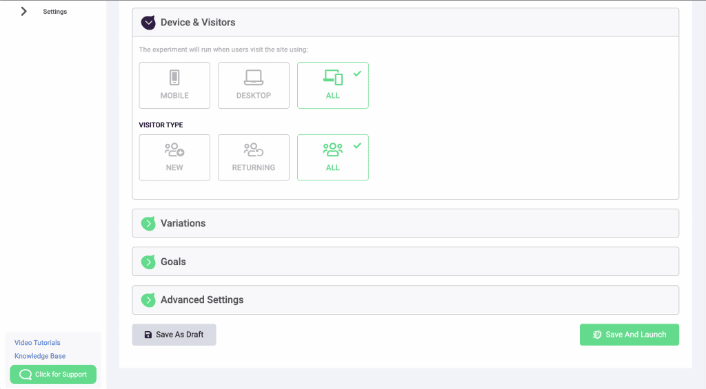 - Next, you need to choose which device you want the test to be on; desktop, mobile, or both.