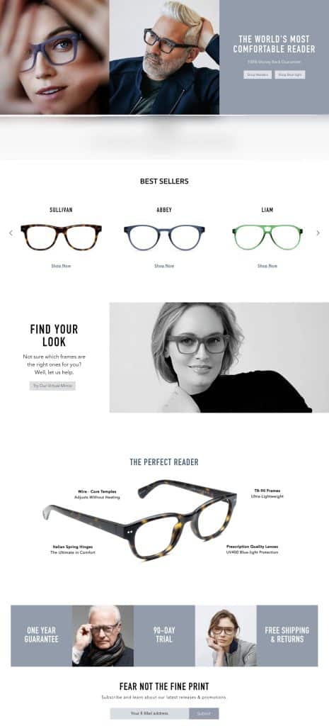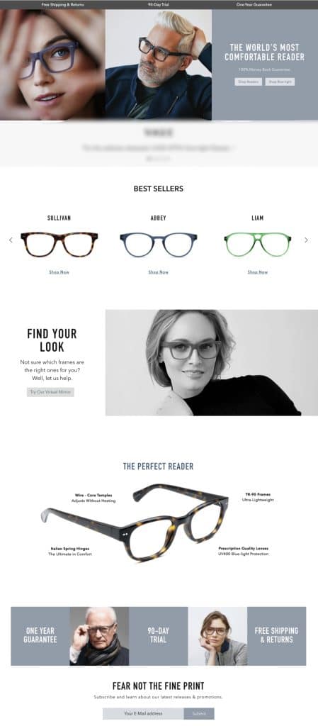 For instance, for this ecommerce website that sells reading glasses online, they had a problem: the benefits banner appeared above the top navigation on their landing page.