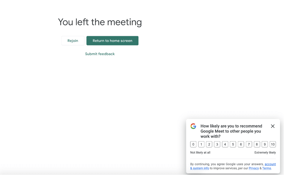 To see an example of how this can work in practice, check out Google Meets’ on-site poll below: