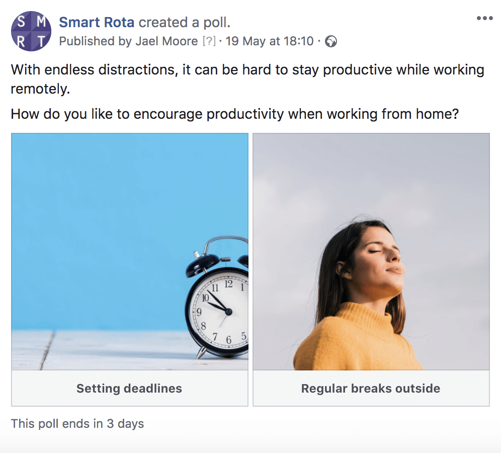Here’s an example of a Facebook poll from Smart Rota that only allows you to vote for a certain amount of time: