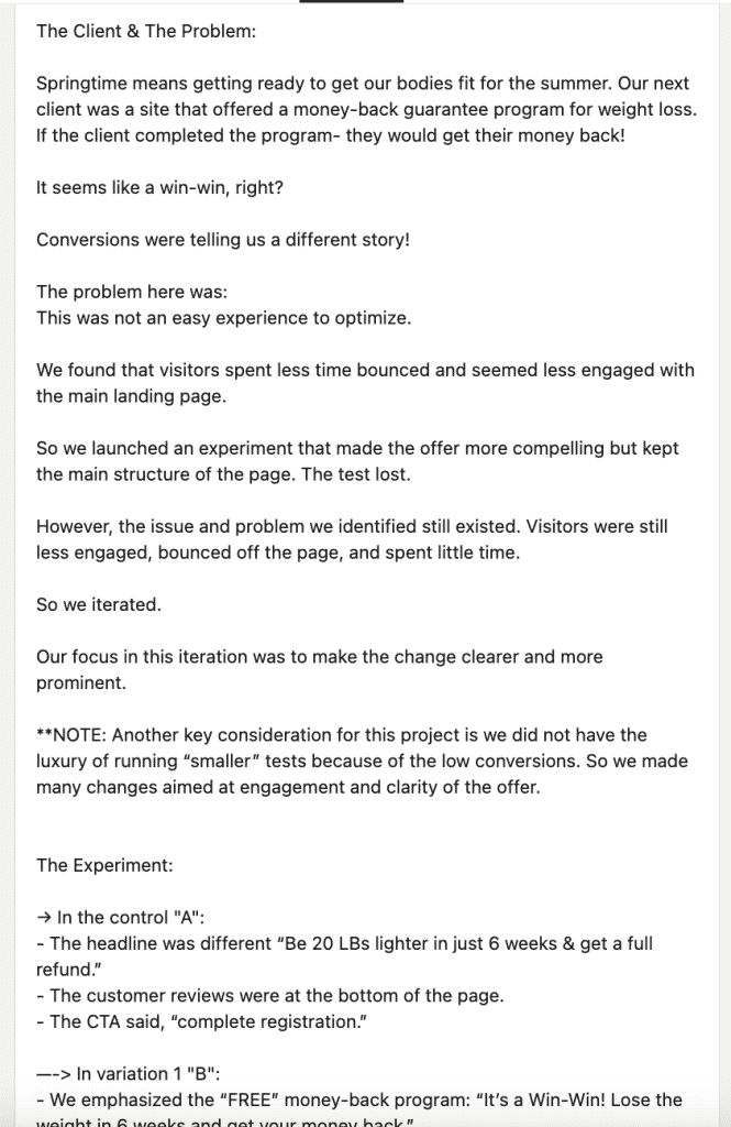 And that’s where the case studies come in – I post them every Wednesday using the #ABTestWednesdays hashtag.