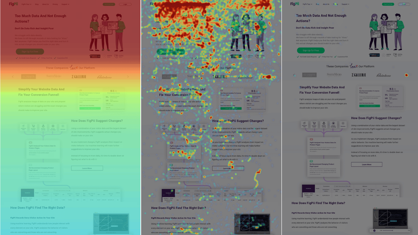 • At first, FigPii shows the heat map data on the first page a user comes to from the group of pages. So, if you create a heat map for 1,000 product pages, we will show the data on the first product page that a user landed on after you created the heat map.