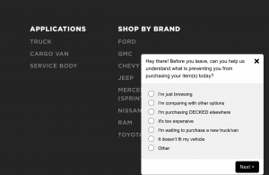 In the below screenshot for an example, on this page for ‘Decked’ website, as soon as you try to exit the page, this poll from FigPii shows up.