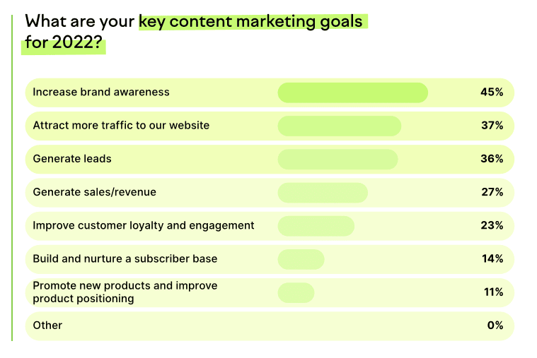 According to SEMRush’s ‘State Of Content Marketing’ report, 45% of people use content to fuel their brand awareness, while 37% use it to get more visitors to their website.